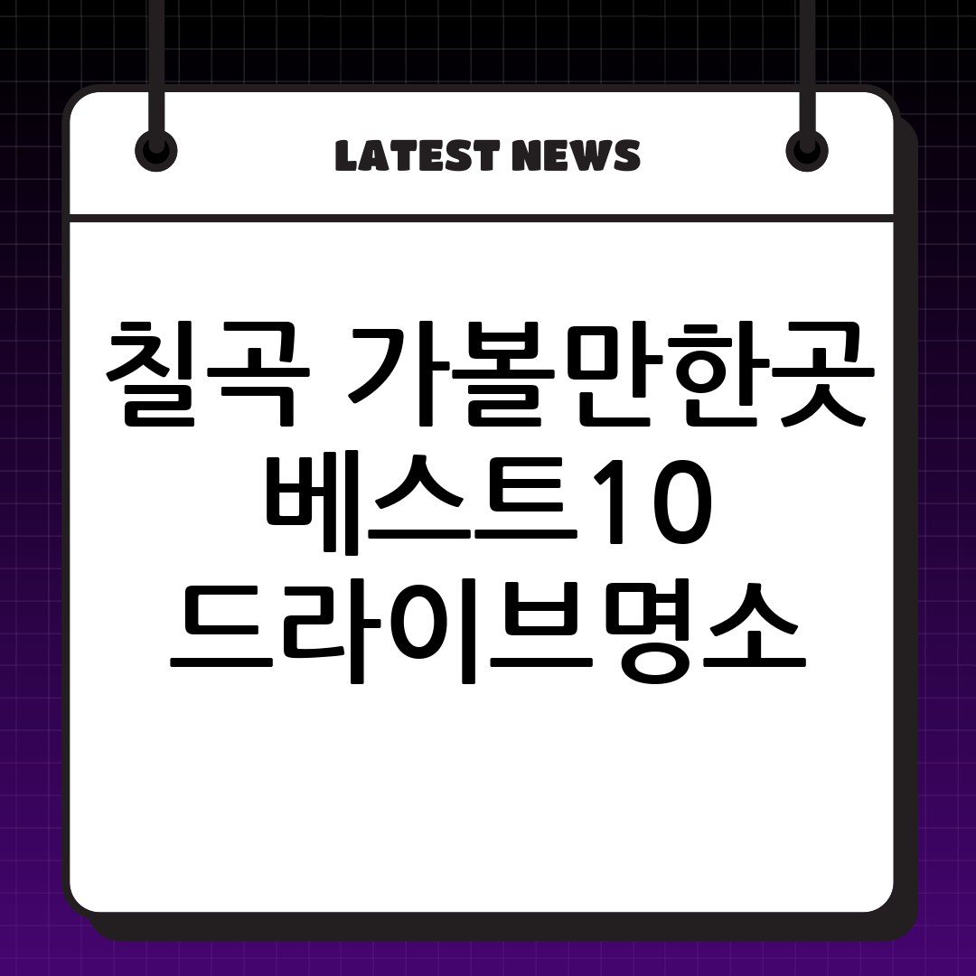 지금까지 소개해 드린 칠곡 가볼만한곳 베스트10 드라이브명소 리스트를 참고하여 즐거운 여행 계획을 세워보세요. 역사와 자연, 그리고 맛과 멋이 공존하는 칠곡에서 특별한 추억을 만들어보시길 바랍니다. 여러분만의 칠곡 가볼만한곳 베스트10 드라이브명소를 찾아 떠나는 여정, 분명 만족스러우실 겁니다.